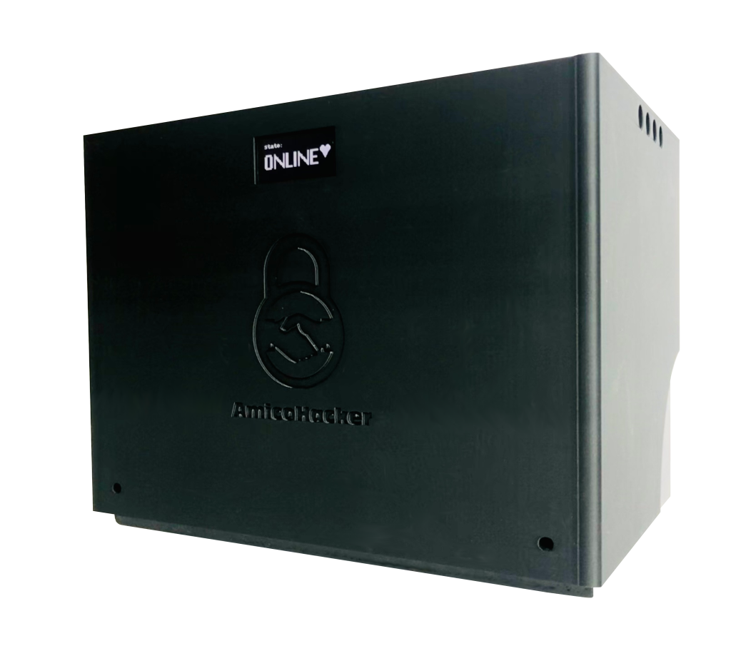 Ti basta collegarlo alla corrente e alla rete: AmicoHacker® inizia subito a lavorare, senza bisogno di configurazioni complesse. Tutto quello che ti serve lo ricevi via email: richieste, risposte, report. Nessuna interfaccia, nessun pannello da imparare.